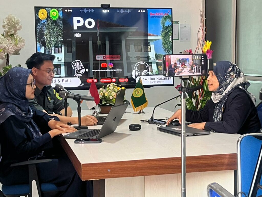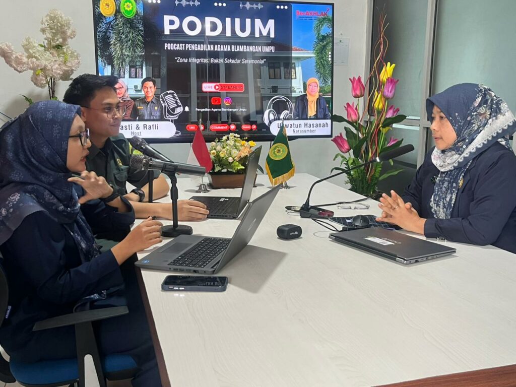 Blambangan Umpu – Pengadilan Agama Blambangan Umpu gencar membangun budaya antikorupsi yang nyata, kali ini dikemas dalam bincang singkat melalui Podcast Pengadilan Agama Blambangan Umpu atau disingkat Podium. Perdana diselenggarakan pada Selasa, (21/4), mellaui media streaming YouTube dan live pada Instagram, dengan narasumber Ketua Pengadilan Agama Blambangan Umpu, Uswatun Hasanah, dan dipandu dengan Host Hakim Salasti Faridatun Hasanah, serta Teknisi Sarana Prasarana, M. Rafli Nugraha Putra.